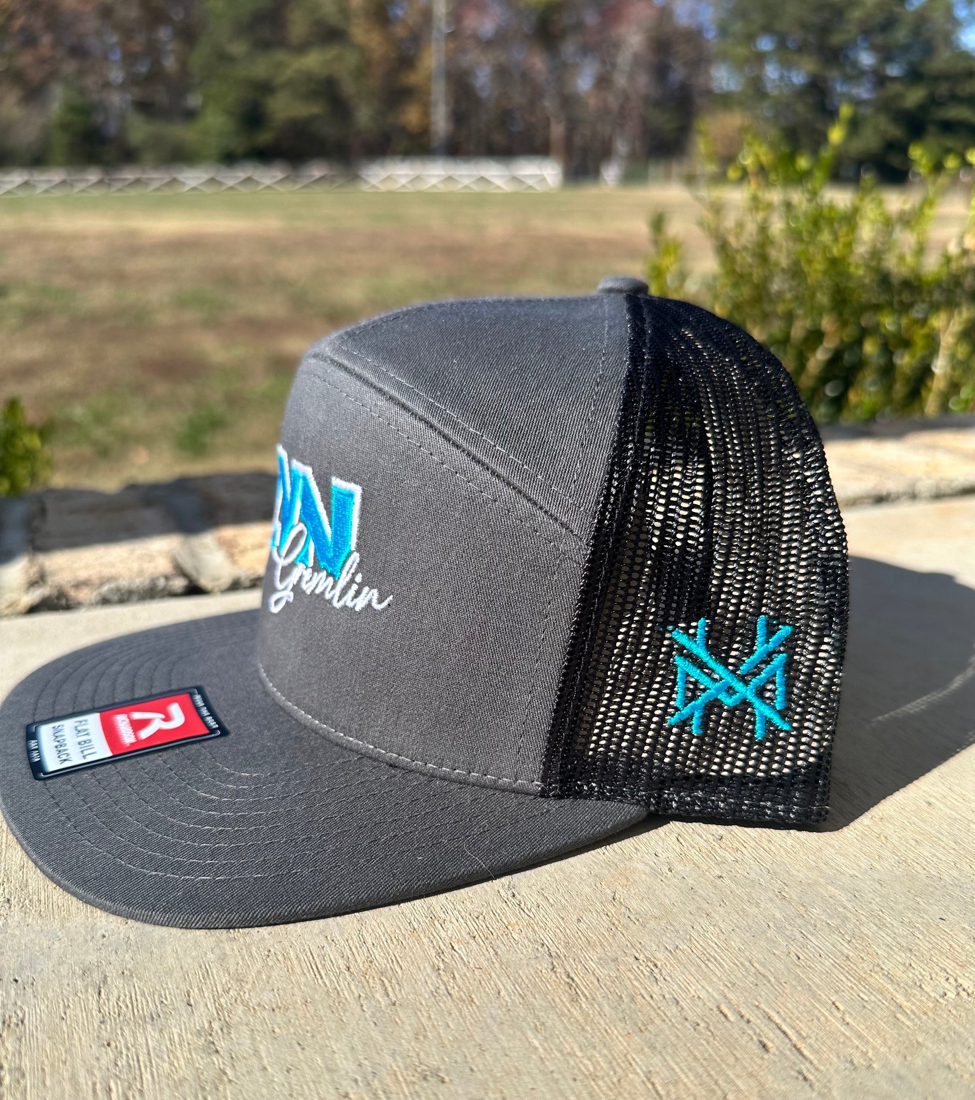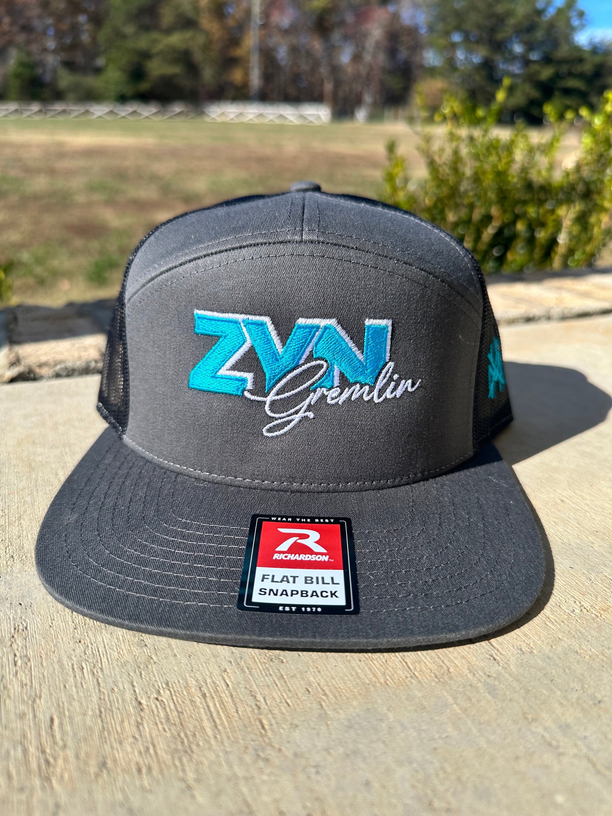 Charcoal & black Richardson 168 fit flat brim hat.